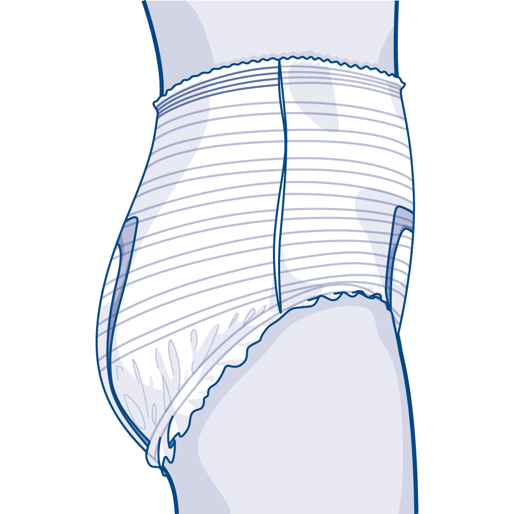 Diskrete und elastische Einmalhosen bei starker Blasenschwäche.