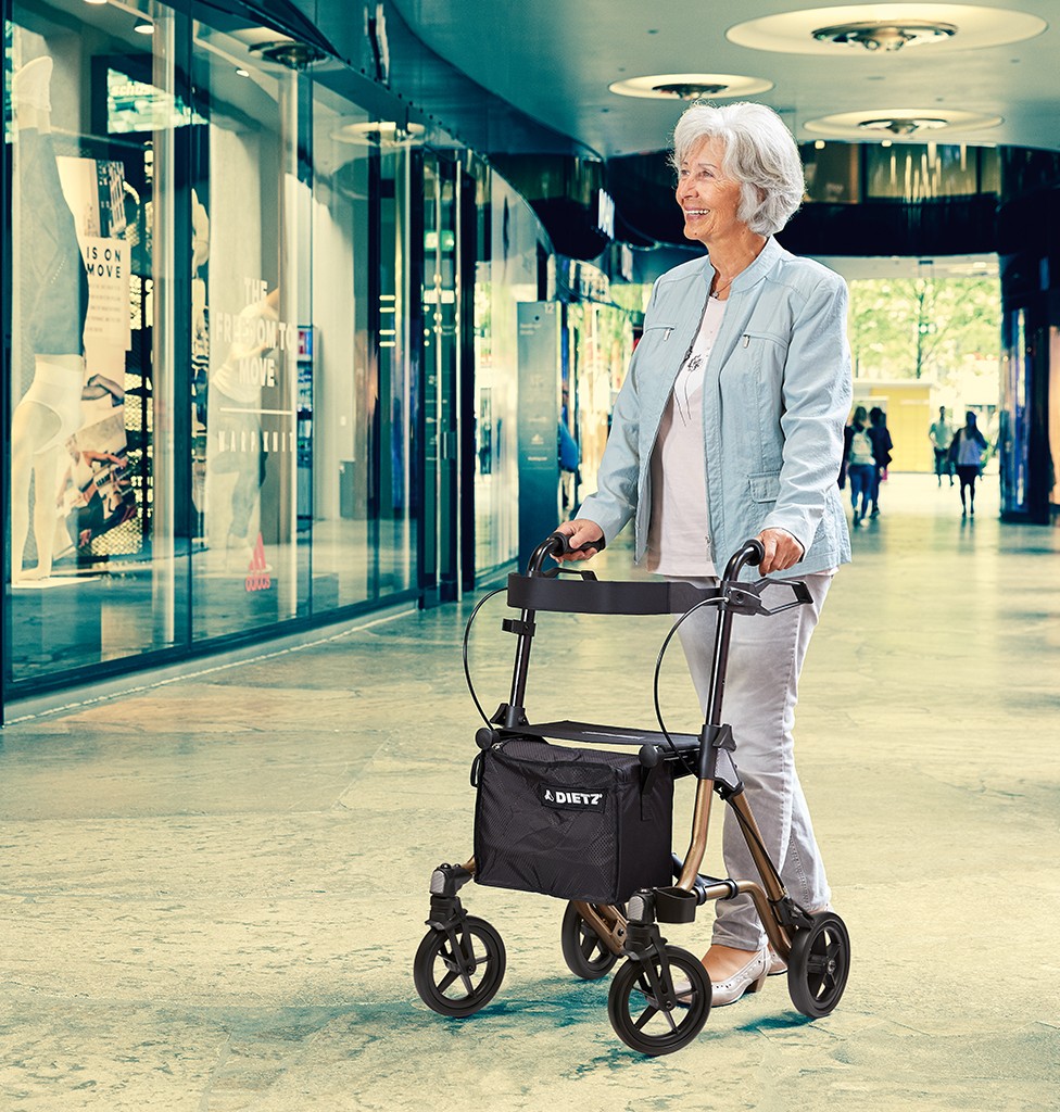 - Reflektoren (Seite / Frontpartie), Rückenbügel, Gehstockhalter, Netztasche und Lenkungsdämpfer gehören zum Lieferumfang